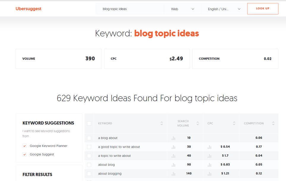 You could make life easier by just going to Neil Patel’s Ubersuggest and plug in the word or phrase of interest and, well, learn a heck of a lot about what is active on the net. The site pulls results from Google for you, without an account.